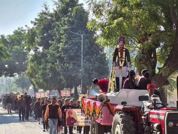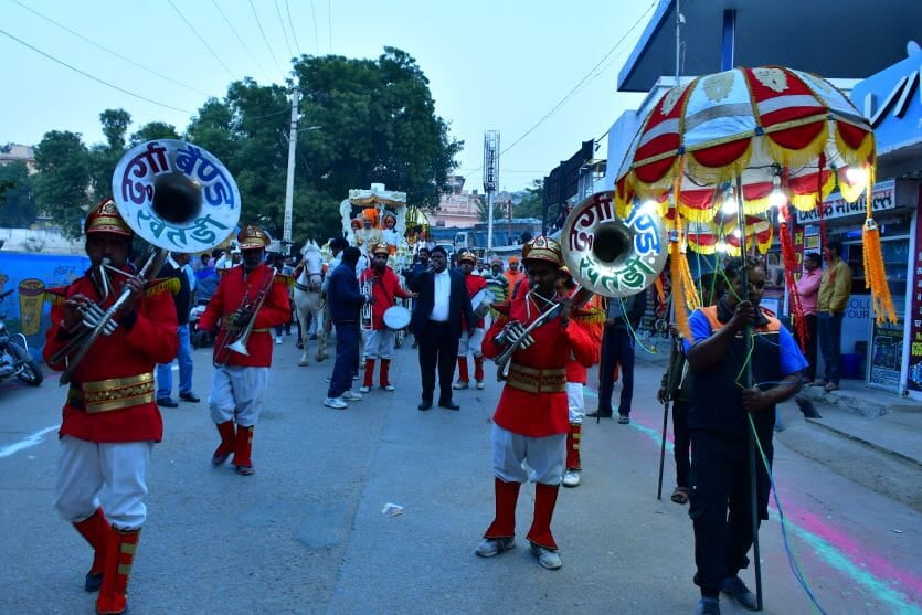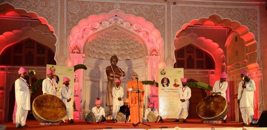 Swami Vivekananda, on his return from America in 1897, reached Khetri on 12 December 1897 and was accorded a gala welcome by Raja Ajit Singh and the Khetri residents at Panna Shah Talab. The historical day is celebrated as 'Khetri Virasat Divas' each year.This year, a morning procession (Prabhat Pheri) of 1200 schoolchildren marched through the town to remind people about the significance of the day. A live tableau of Raja Ajit Singh bringing Swami Vivekananda in a horse carriage was positioned in a procession leading from the Ajit-Vivek Museum to Panna Shah Talab; prominent spots and many houses of the town were illumined.Vivek Deepavali' was organized at the Panna Shah Talab, which was decorated with 8000 deepaks and colourful focus lights. A dance drama namely 'Shri Krishna Lila' by the Shri Nikunj Vihari Rashlila Trust,Vrindavan was performed before an audience of about one thousand people.The Khetri Centre conducted cultural competitions in which 479 students from 20 schools and colleges took part and was also attended by teachers, volunteers, local guests, etc., numbering to 207. Prizes were distributed to the winners at the end of the competitions. Food packets were served to all.